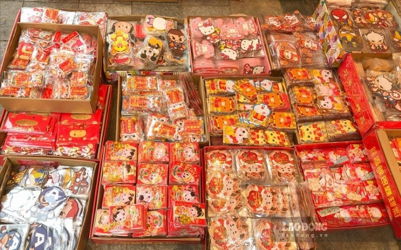 Phong tục lì xì đầu năm là nét văn hóa đẹp của người Việt, vì thế phong bao đỏ luôn nằm trong danh sách hàng bán chạy. Người mua thường chọn những mẫu có hình con giáp hoặc câu chúc Tết ý nghĩa để gửi gắm lời chúc may mắn. Với thiết kế ngày càng sáng tạo, phong bao lì xì vừa mang tính biểu trưng vừa là mặt hàng bán chạy dịp Tết dễ tiêu thụ.