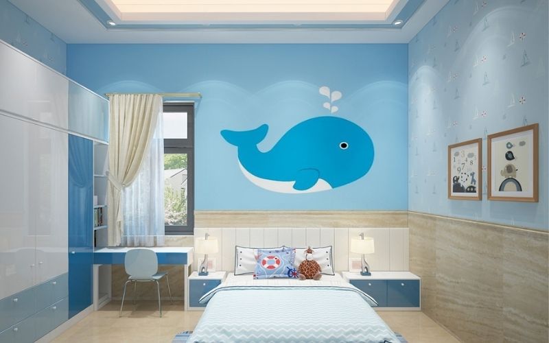 - Màu thuộc hành Thủy: Đen; Xanh dương; Xanh nước biển. Các màu này giúp bé ổn định tâm lý, kích hoạt trí tuệ và mang đến cảm giác bình yên.