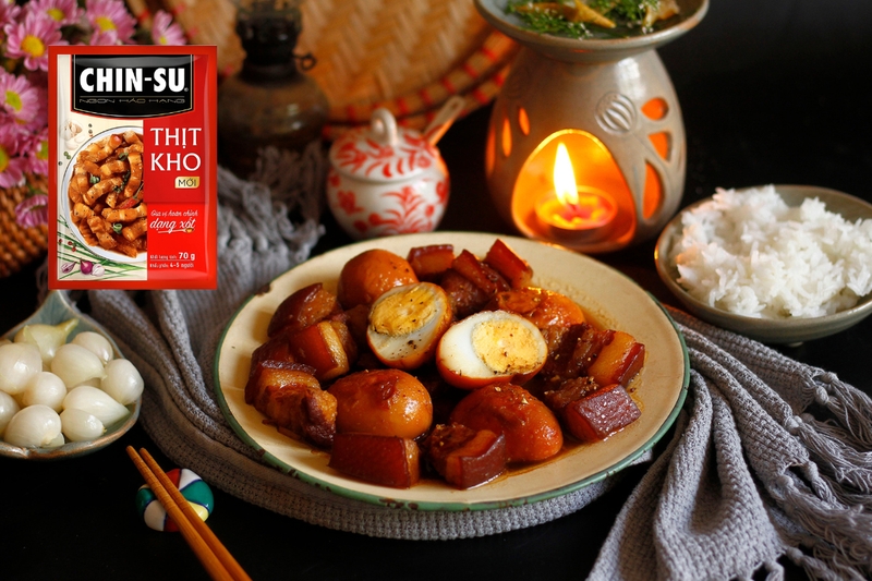 Gói gia vị nấu thịt kho tàu giúp người nội trợ tiết kiệm thời gian nấu nướng (Ảnh: Chinsu)