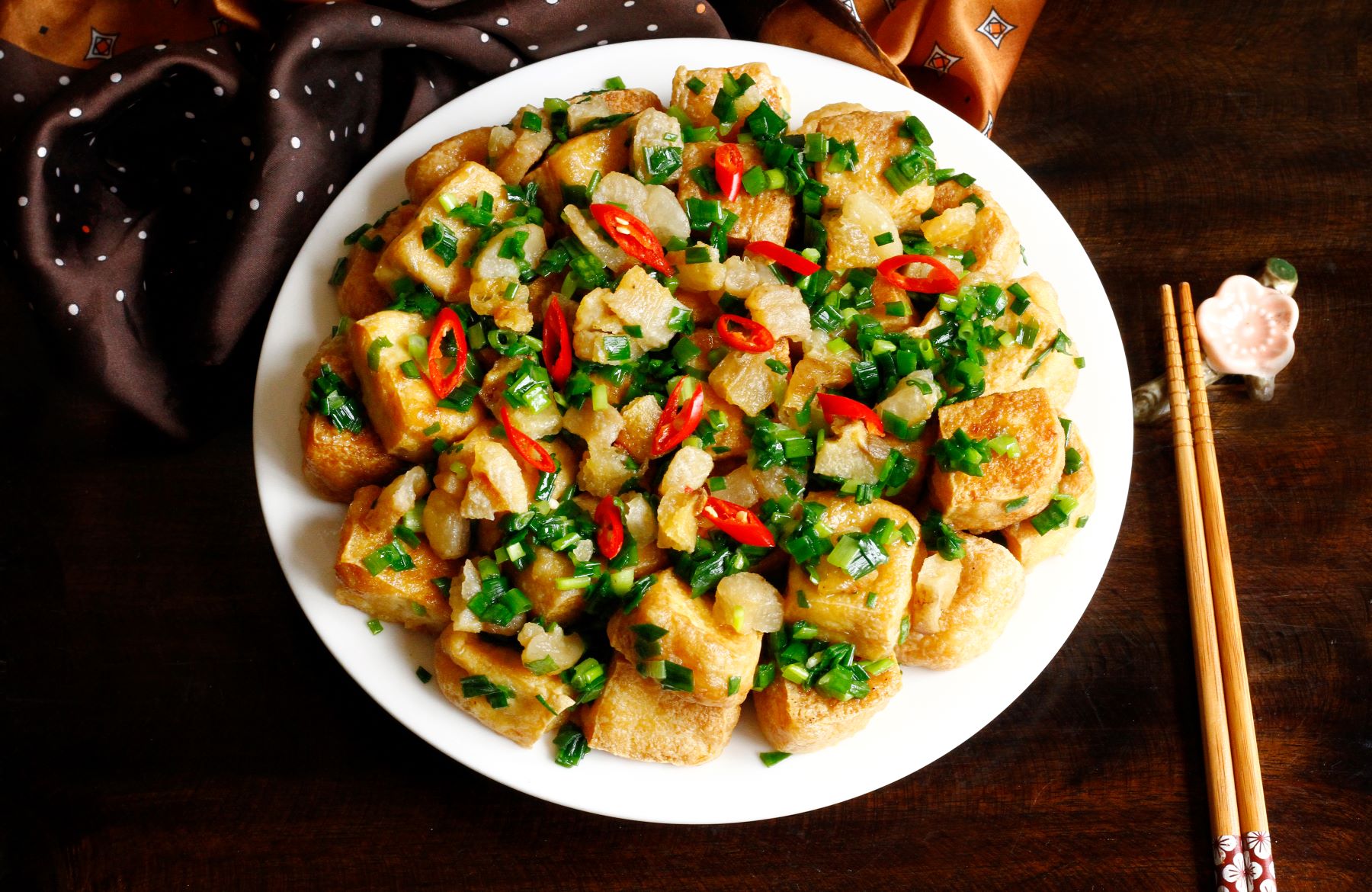 Hoàn toàn phù hợp, bởi đậu phụ và hành lá đều là nguyên liệu thuần chay, giàu protein và vitamin.