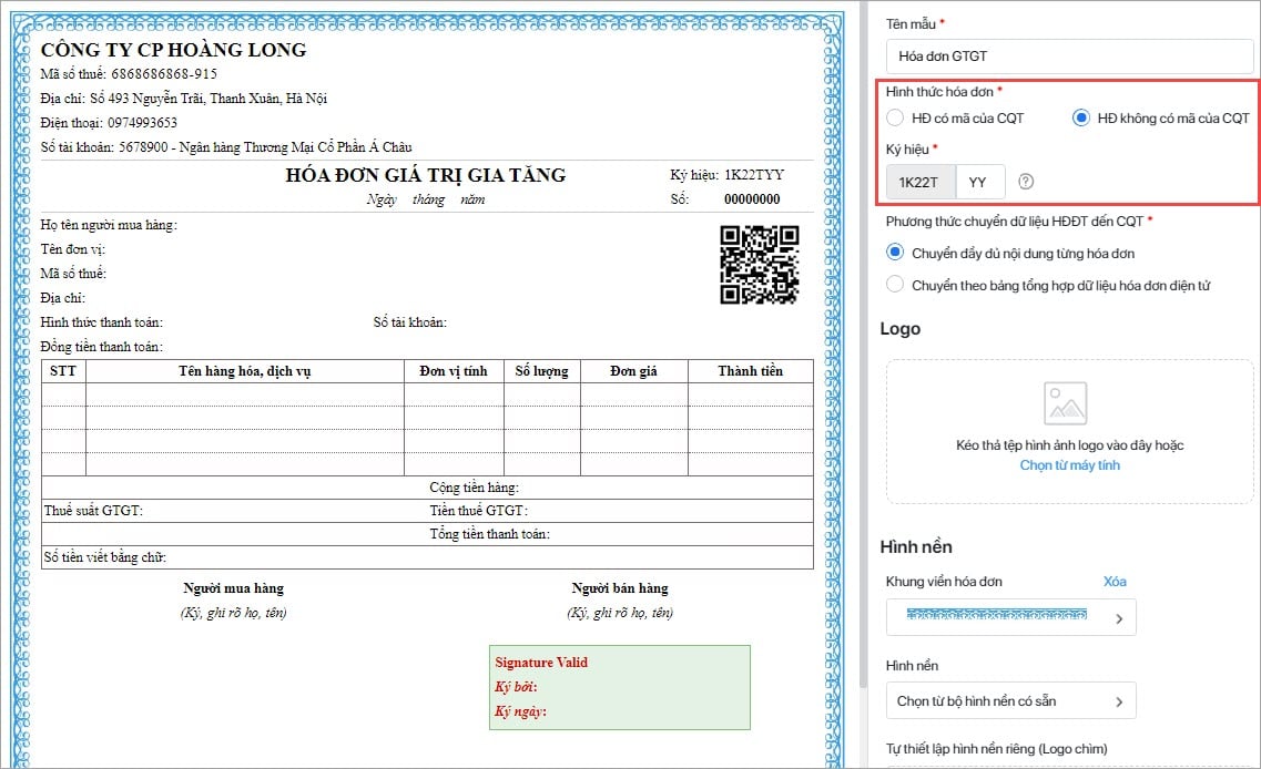Khởi tạo hóa đơn không có mã số thuế cho doanh nghiệp (Ảnh: meInvoice)