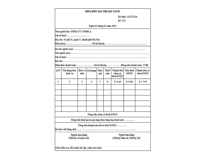 - Tên, địa chỉ, mã số thuế của người bán và người mua.