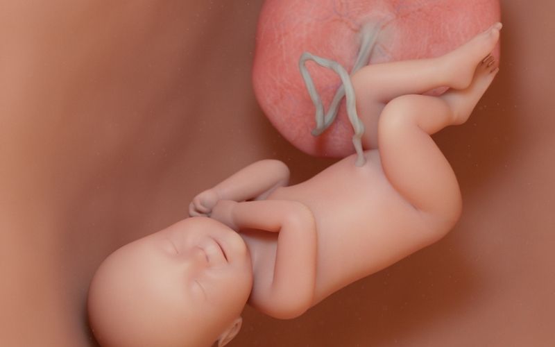 Không. Trong bụng mẹ, phổi của thai nhi còn chưa hoạt động. Bé sẽ nhận oxy hoàn toàn thông qua nhau thai và dây rốn.