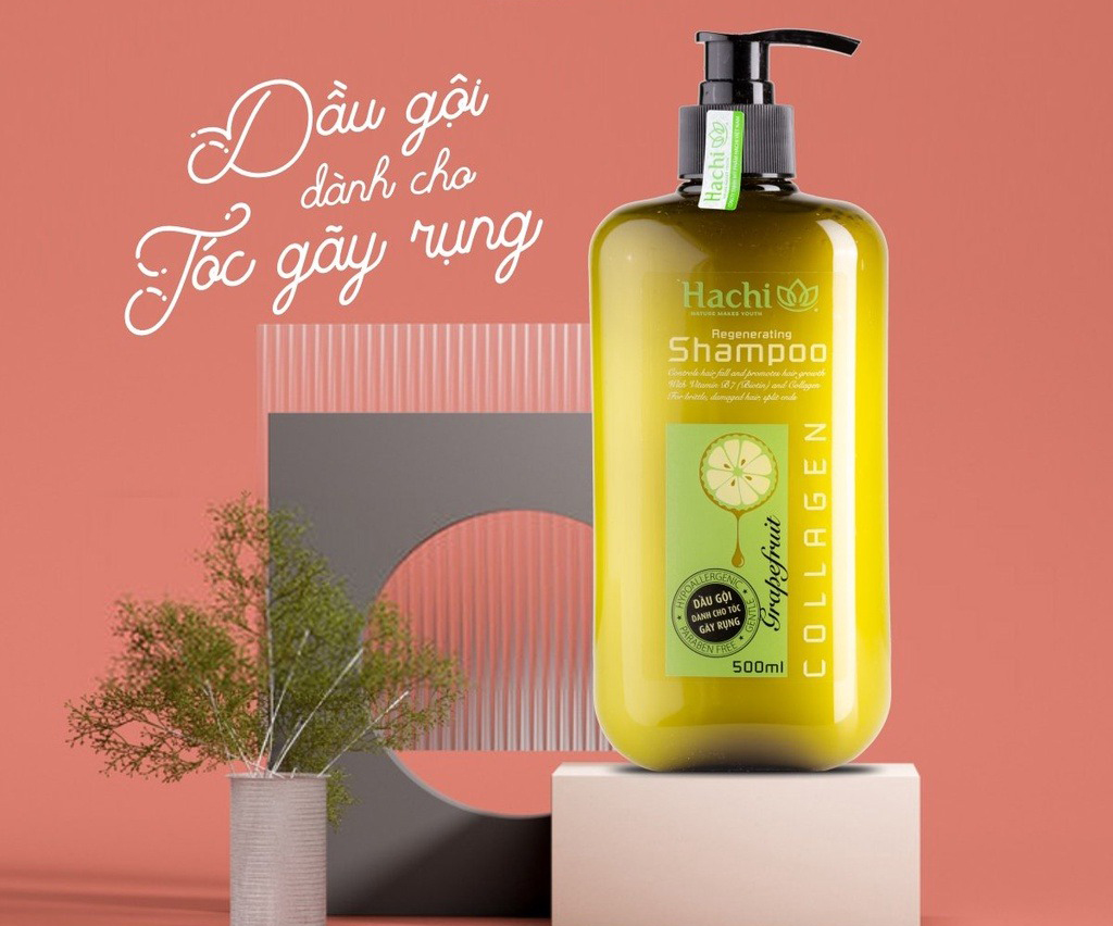 Dầu gội HACHI tinh chất bưởi vừa hỗ trợ giảm gãy rụng vừa giúp kích thích mọc tóc (Ảnh: Long Châu)