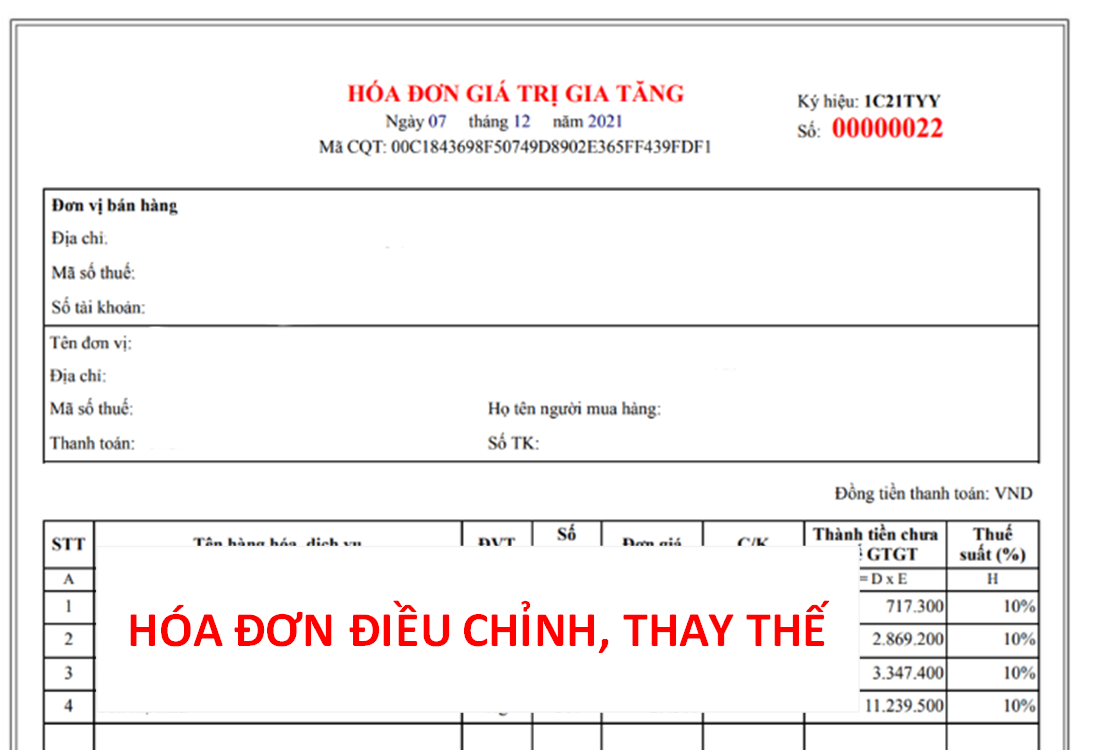 - Áp dụng khi hóa đơn sai mã số thuế, số tiền, thuế suất hoặc thông tin hàng hóa quan trọng.