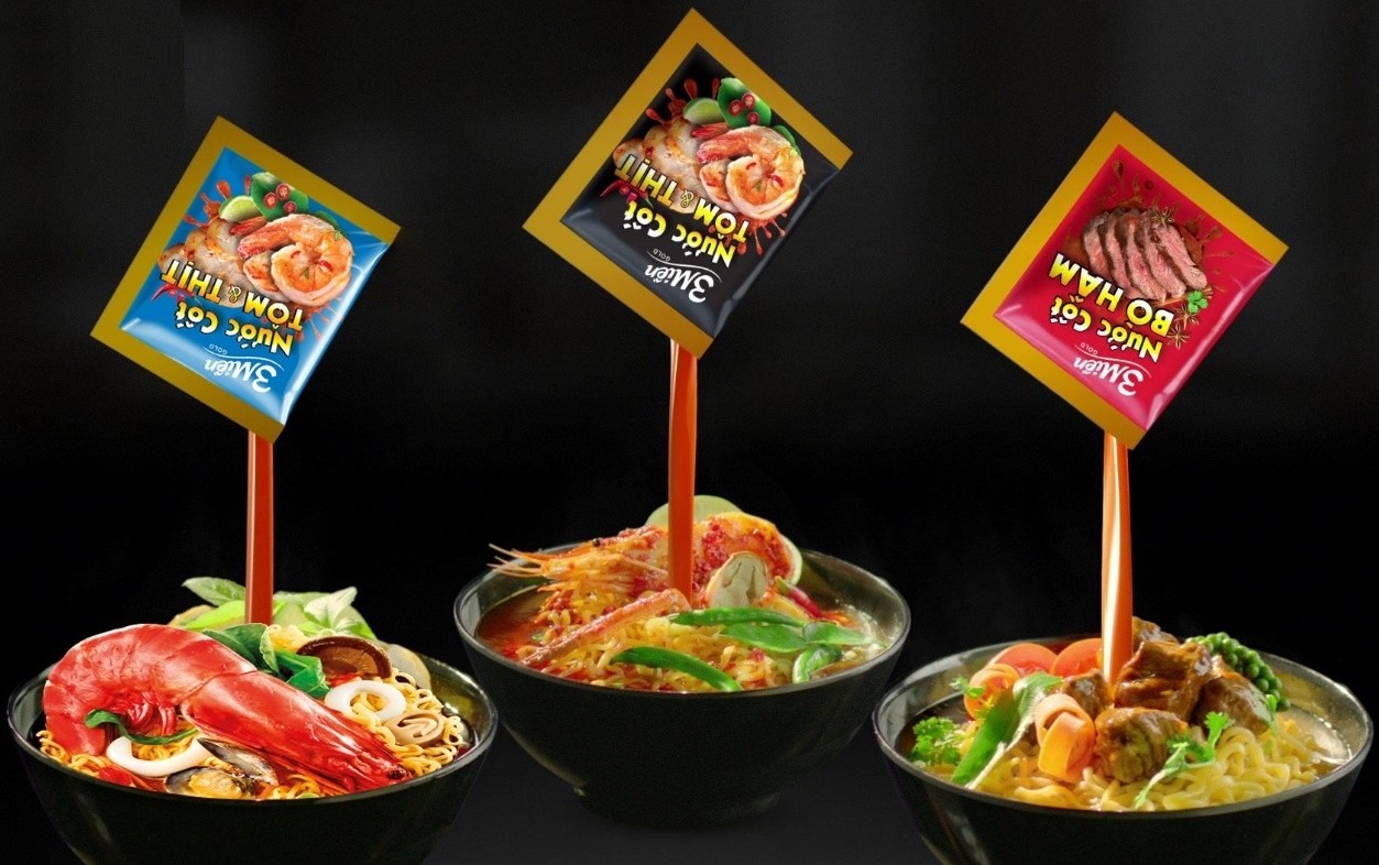 - Mì 3 Miền Gold Tôm Chua Cay Việt: “Phiên bản đột phá” mang hương vị chua cay đúng điệu Việt, dễ ăn, hợp khẩu vị nhiều người.