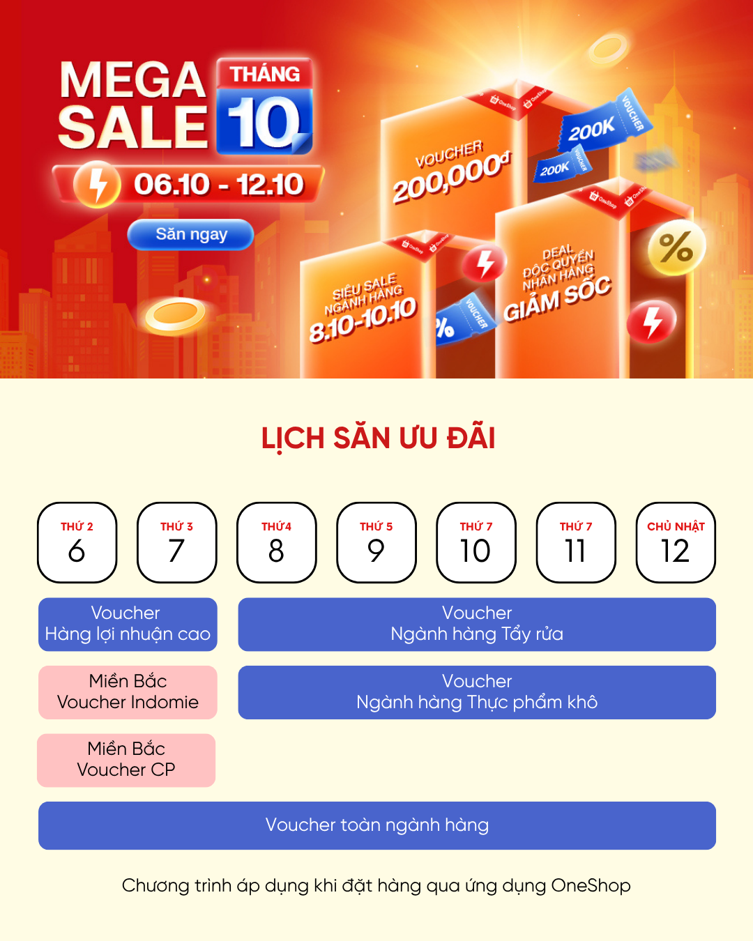 Từ 6/10 – 12/10, OneShop gửi tặng hàng loạt voucher hấp dẫn trên toàn ngành hàng để các Chủ tiệm nhập hàng tiết kiệm hơn bao giờ hết!