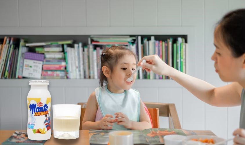 - Không thay thế bữa chính hay sữa công thức: Dù bé thích, bố mẹ cũng không nên cho con ăn váng sữa trước bữa cơm hay dùng thay sữa.