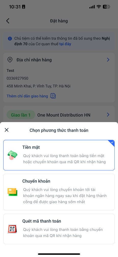(i) Thanh toán tiền mặt khi nhận hàng (COD);