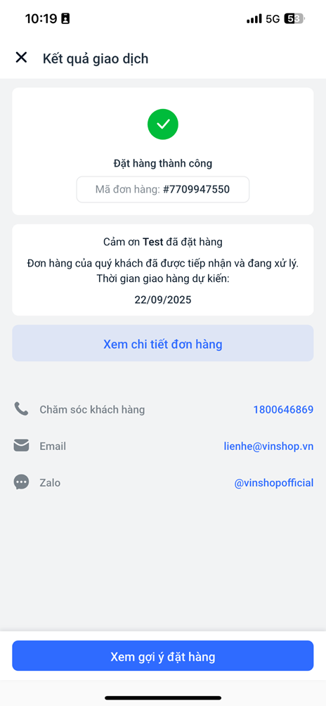 Bước 5: Sản Phẩm của Khách Hàng sẽ được giao/vận chuyển theo quy định tại các chính sách của tính năng tương ứng. Khách Hàng cần kiểm tra Sản Phẩm tại thời điểm giao nhận theo hướng dẫn tại “Chính sách giao hàng”.