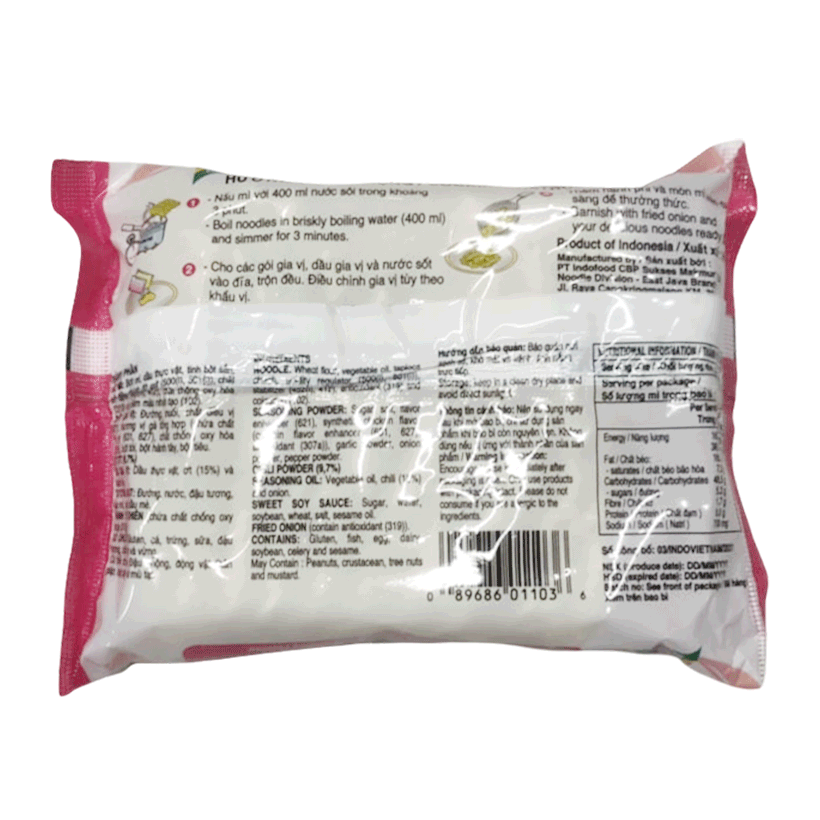 Không chỉ hấp dẫn bởi hương vị cay nồng đặc trưng, mì xào khô INDOMIE Mi Goreng Pedas còn cung cấp nguồn năng lượng thiết yếu và các thành phần dinh dưỡng phù hợp với nhu cầu ăn nhanh hiện đại. Việc hiểu rõ thành phần và công dụng sẽ giúp người tiêu dùng yên tâm hơn khi lựa chọn sản phẩm này cho bữa ăn hàng ngày.