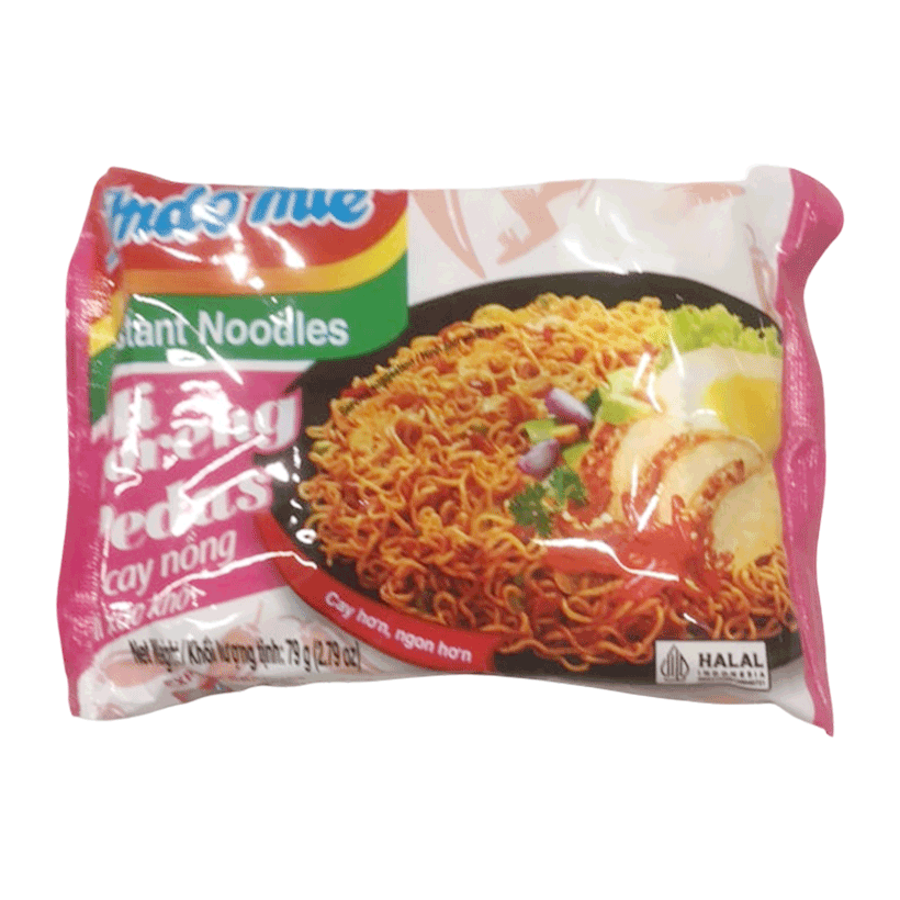 Mì xào khô INDOMIE Mi Goreng Pedas cung cấp năng lượng nhanh chóng, phù hợp cho bữa ăn tiện lợi (Ảnh: Indomie Việt Nam)